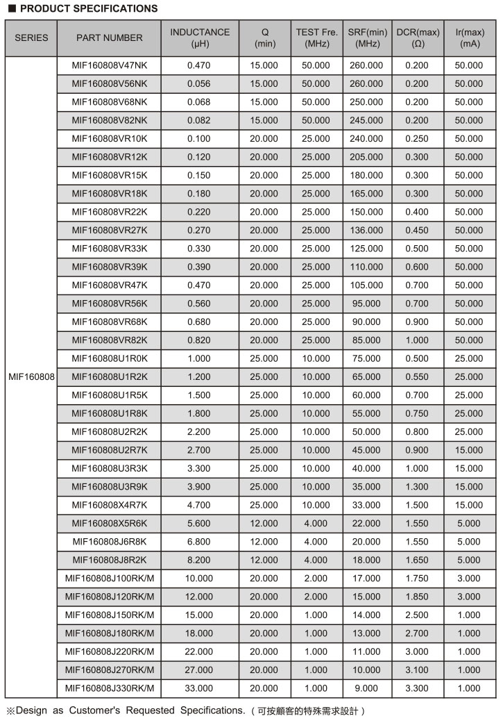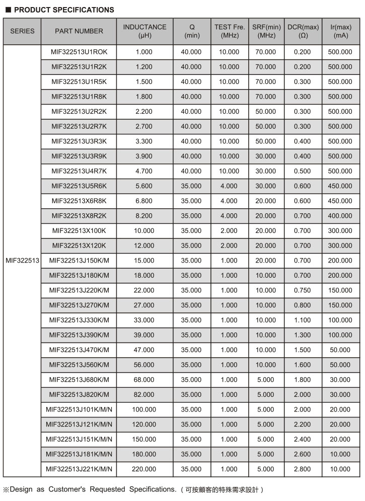 MIF Series 疊層片式電感